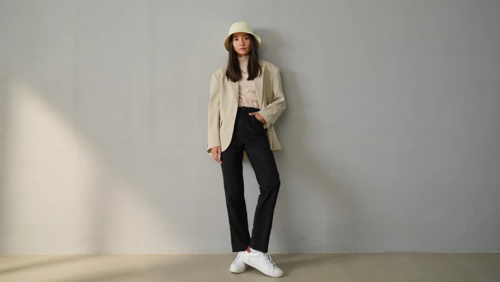 Um dos grandes segredos do fedora é a versatilidade. Ele combina perfeitamente com peças clássicas como camisas brancas, blazers bem estruturados, calças de alfaiataria e trench coats.