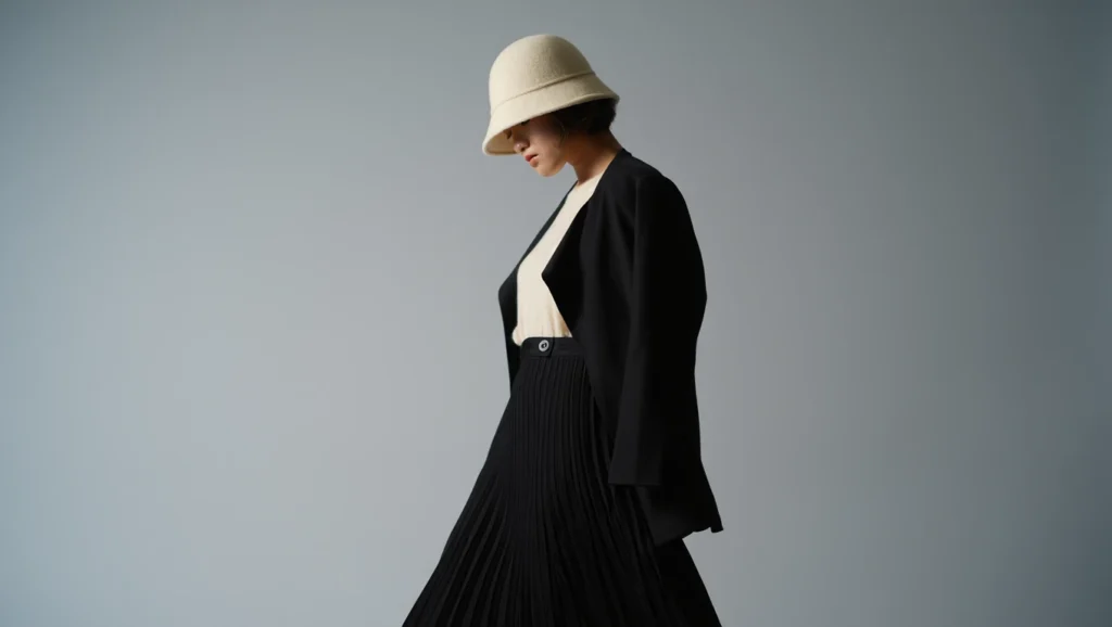 Esse tipo de chapéu funciona especialmente bem em looks elegantes e femininos. Vestidos midi, saias plissadas, casacos estruturados em tecidos mais nobres, como lã, tweed e veludo, criam a base perfeita para o cloche brilhar.