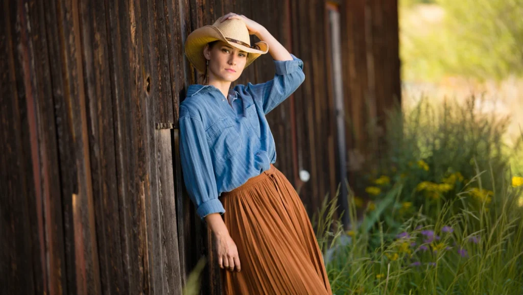 Esse chapéu funciona melhor quando combinado de forma inesperada. Em vez do óbvio jeans + bota, experimente usá-lo com vestidos leves, saias midi, camisas oversized ou até alfaiataria.